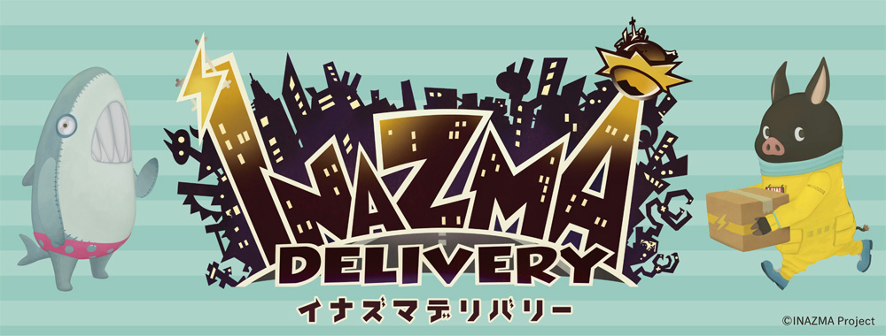 黒ブタのヘミングウェイとサメの着ぐるみバイザウェイが織りなすドタバタ劇のコメディ「イナズマデリバリー」。